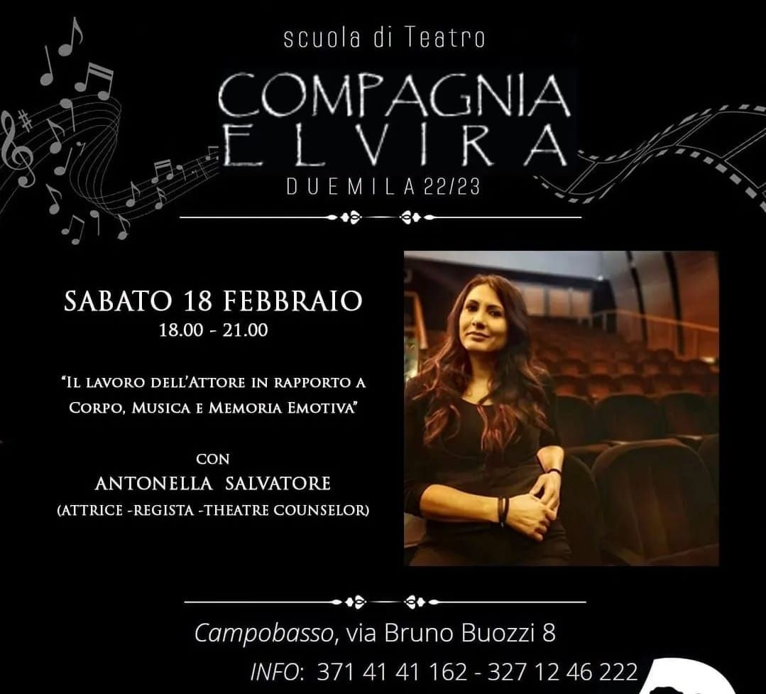 La Compagnia Teatrale Elvira organizza eventi teatrali e seminari, creando momenti unici di formazione e spettacolo. Le rappresentazioni offrono al pubblico esperienze coinvolgenti, i seminari permettono agli appassionati di approfondire le loro conoscenze e abilità sotto la guida di esperti del settore. La Compagnia si è dedicata, fina dalla sua nascita, a promuovere la cultura teatrale, unendo artisti e spettatori in un viaggio emozionante attraverso il mondo del teatro.
